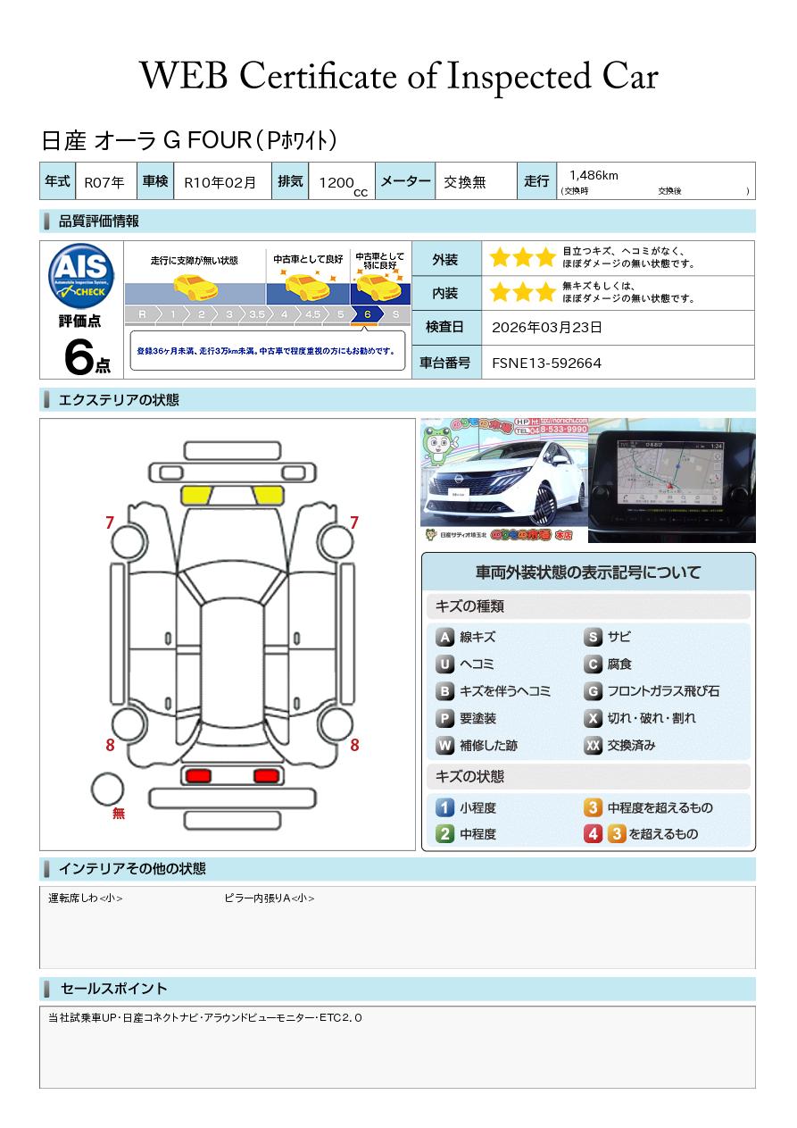 現状括弧書き内の年月まで車検有効期限が残っていますが、ご成約時に新しく車検を取り直します。なお取り直しの費用は車両価格に含まれています。