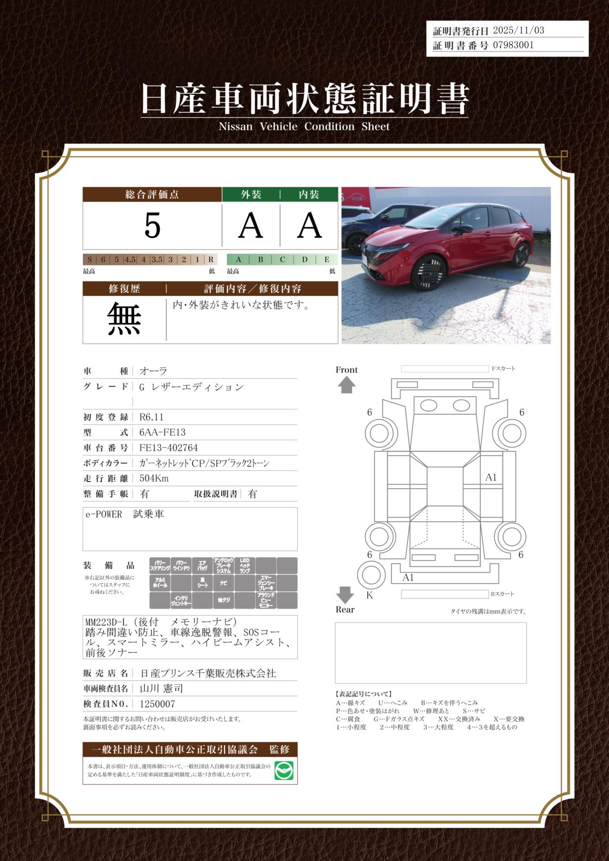 ★当社試乗車&認定中古車勢揃い!!台数限定!社用車特選車★目玉車!! ◆当社試乗車アップ・アリア・エクストレイル・オーラ・ノート・ルークス入荷中!! 当店は日産プリンス千葉・千葉日産自動車2社合同の大展示場店舗になります。 ◆ディーラーならではの安心の全車保証付き ◆全国2300の工場で充実の保証とアフターサービス ◆プレミアム認定中古車、認定中古車を多数展示 ◆全車安心の車両状態証明書完備 ◆全国陸送も対応可能 ★お問合せ・ご購入相談スタッフ一同お待ちしております。