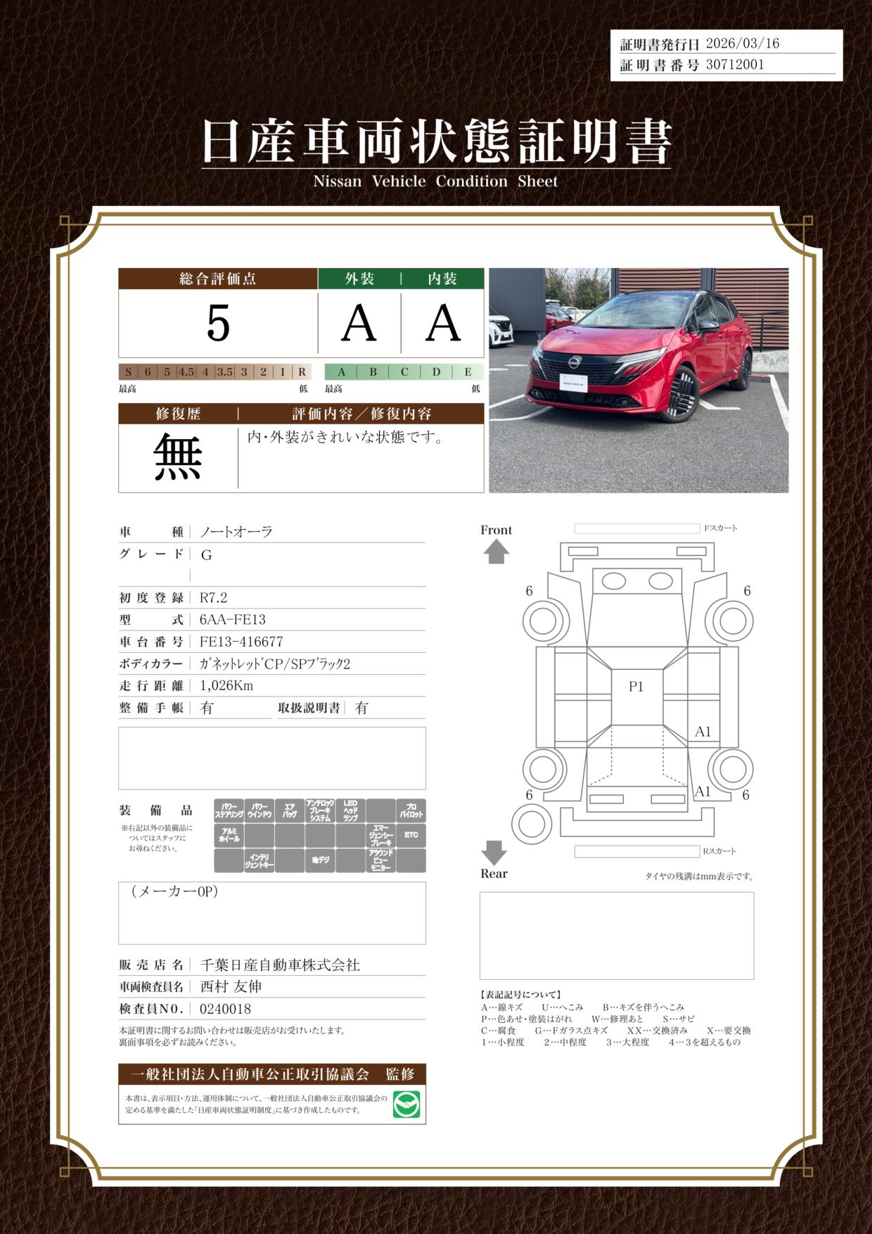 「車両状態証明書」は、査定協会監修のプロの検査員が公正かつ確かな基準で検査した”安心の証”です。