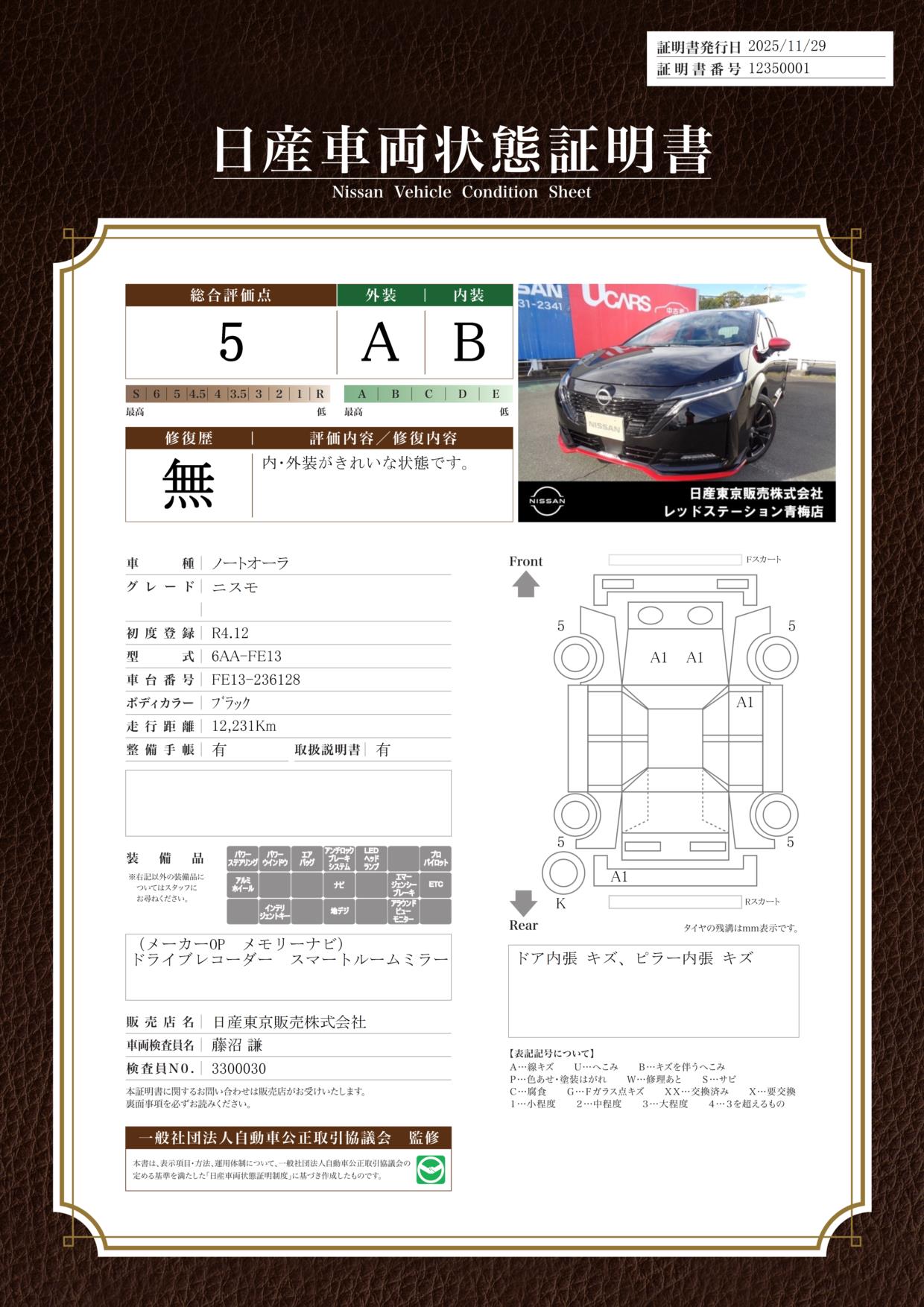 ノートオーラ 1200cc 1.2 NISMO NCナビニスモ専用装備