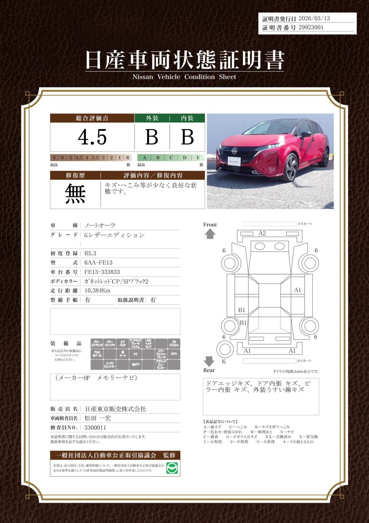 「車両状態証明書」は、査定協会監修のプロの検査員が公正かつ確かな基準で検査した”安心の証”です。