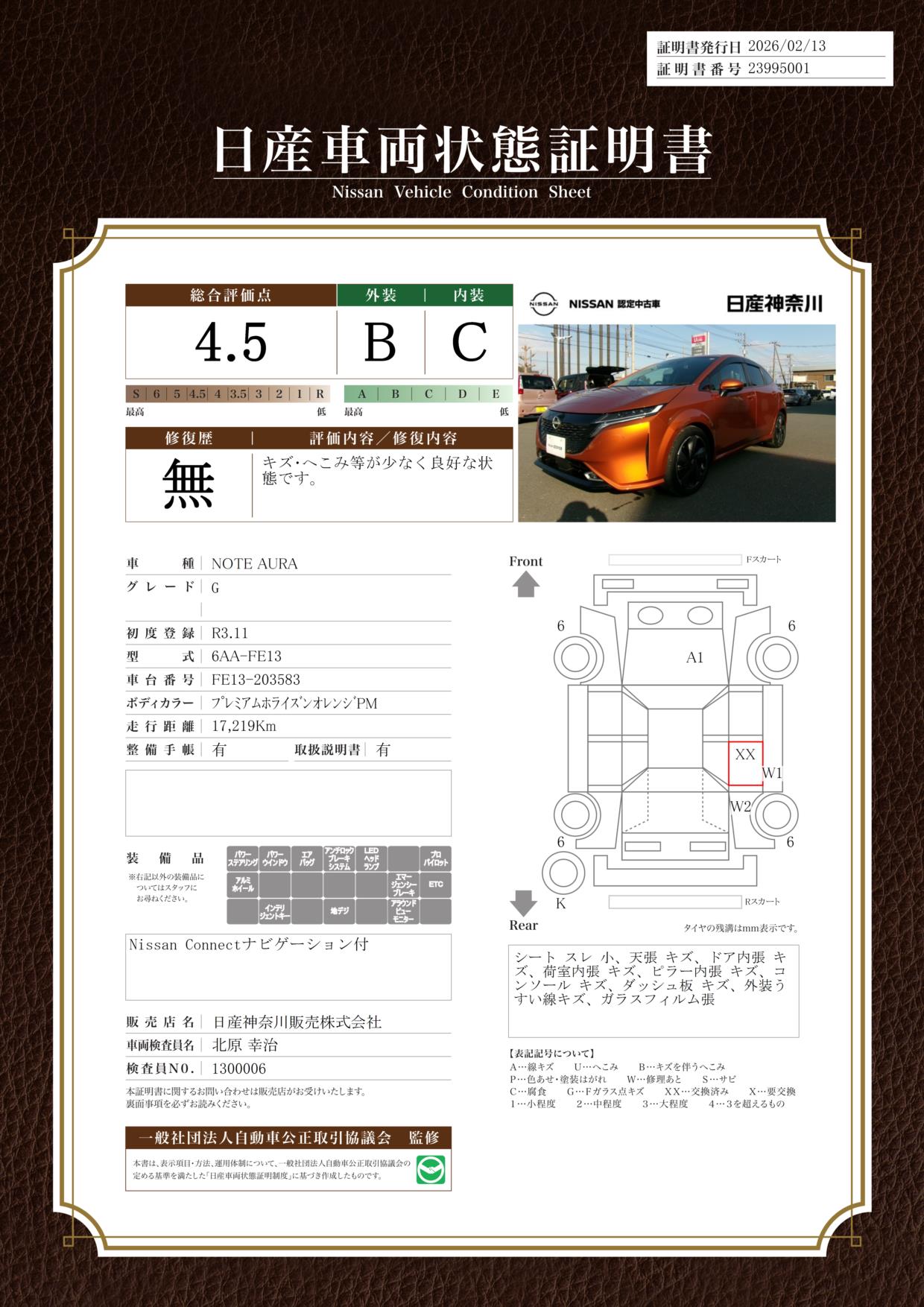 現状括弧書き内の年月まで車検有効期限が残っていますが、ご成約時に新しく車検を取り直します。なお取り直しの費用は車両価格に含まれています。