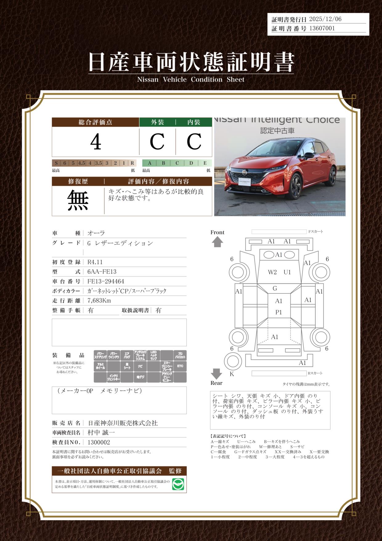 ノートオーラ 1200cc 1.2 G レザーエディション ナビ+AVM Dレコ ETC P-pilot 試乗車