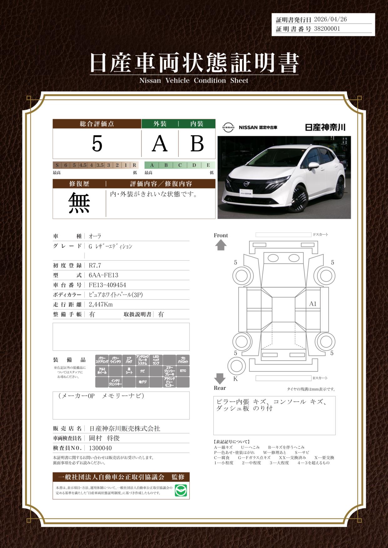 ノートオーラ 1200cc 1.2 G ナビ+AVM Dレコ BOSE 寒冷地仕様 試乗車