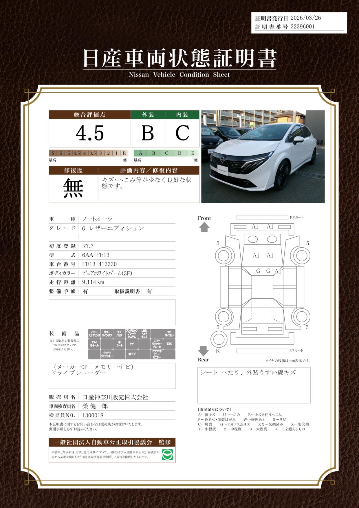 「車両状態証明書」は、査定協会監修のプロの検査員が公正かつ確かな基準で検査した”安心の証”です。