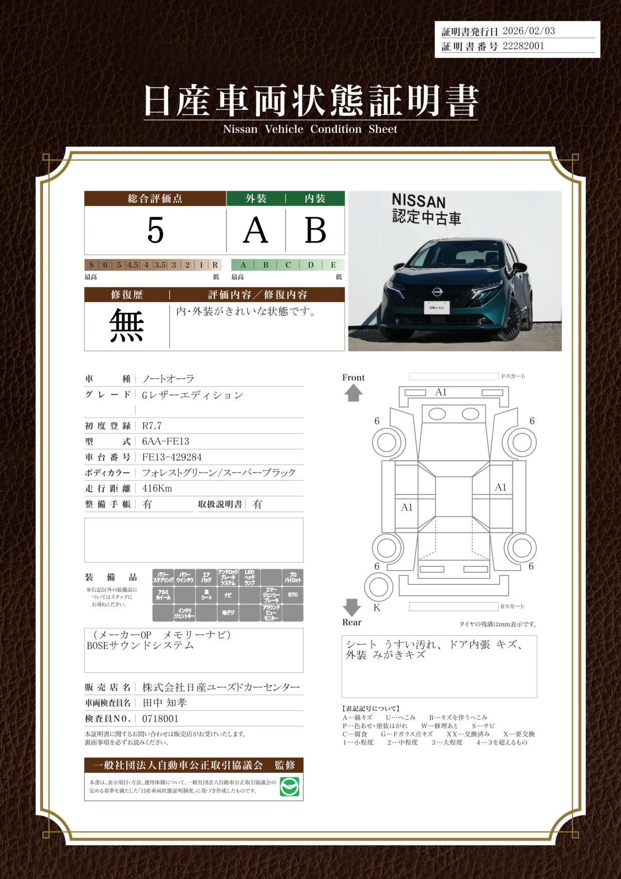 現状括弧書き内の年月まで車検有効期限が残っていますが、ご成約時に新しく車検を取り直します。なお取り直しの費用は車両価格に含まれています。