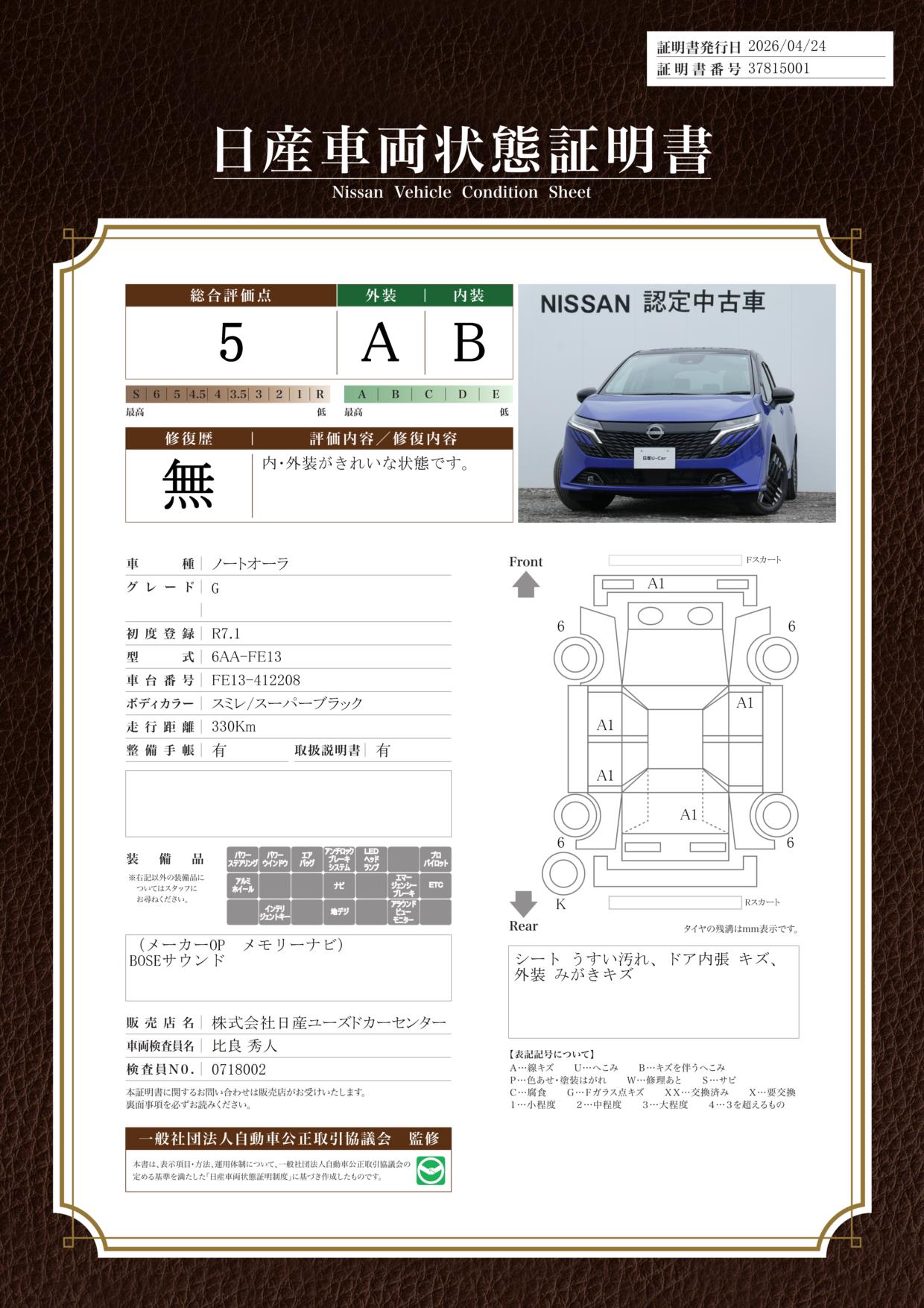 「車両状態証明書」は、査定協会監修のプロの検査員が公正かつ確かな基準で検査した”安心の証”です。