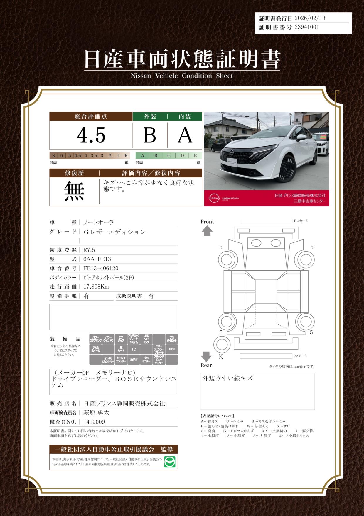 日産ノートオーラ入荷しましたBOSEサラウンドシステム★前後ドライブレコーダー★アラウンドビューモニター★インテリジェントキー★