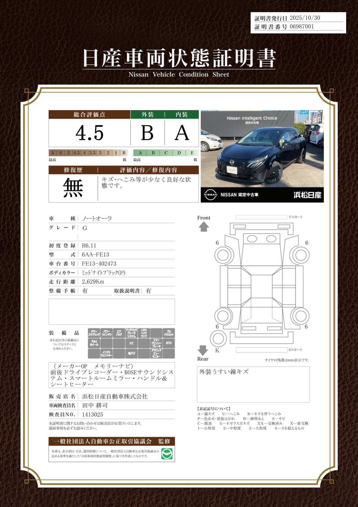 ノートオーラ 1200cc 1.2 G レザーエディション 全方位カメラ