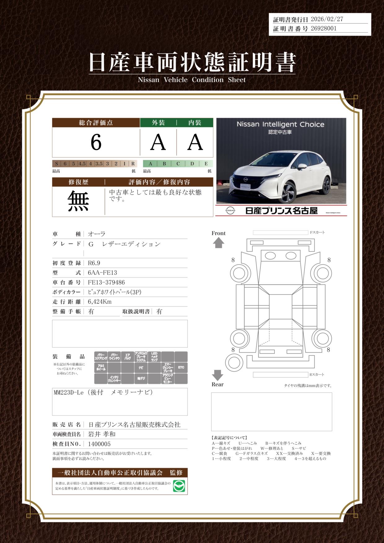 「車両状態証明書」は、査定協会監修のプロの検査員が公正かつ確かな基準で検査した”安心の証”です。