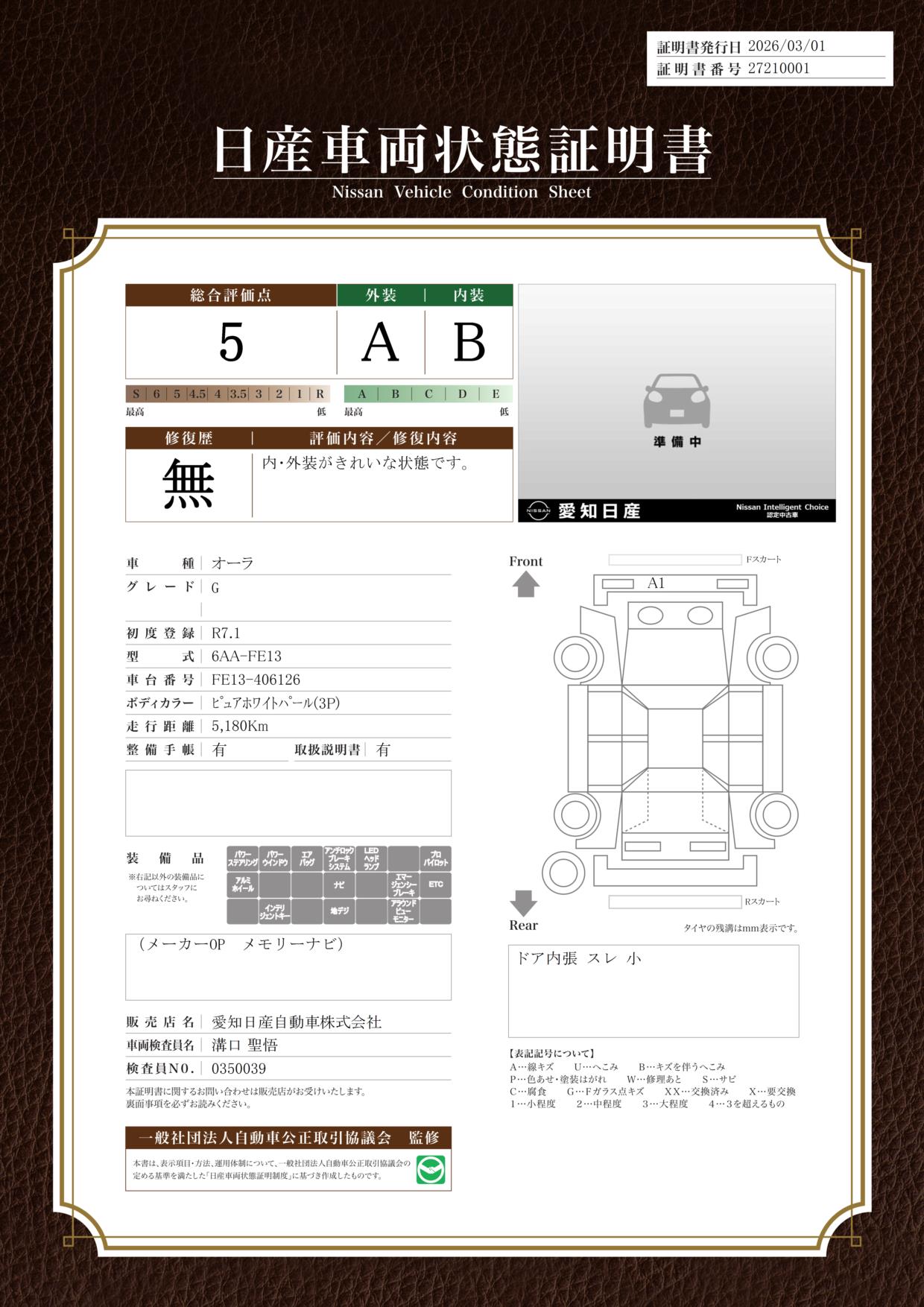「車両状態証明書」は、査定協会監修のプロの検査員が公正かつ確かな基準で検査した”安心の証”です。
