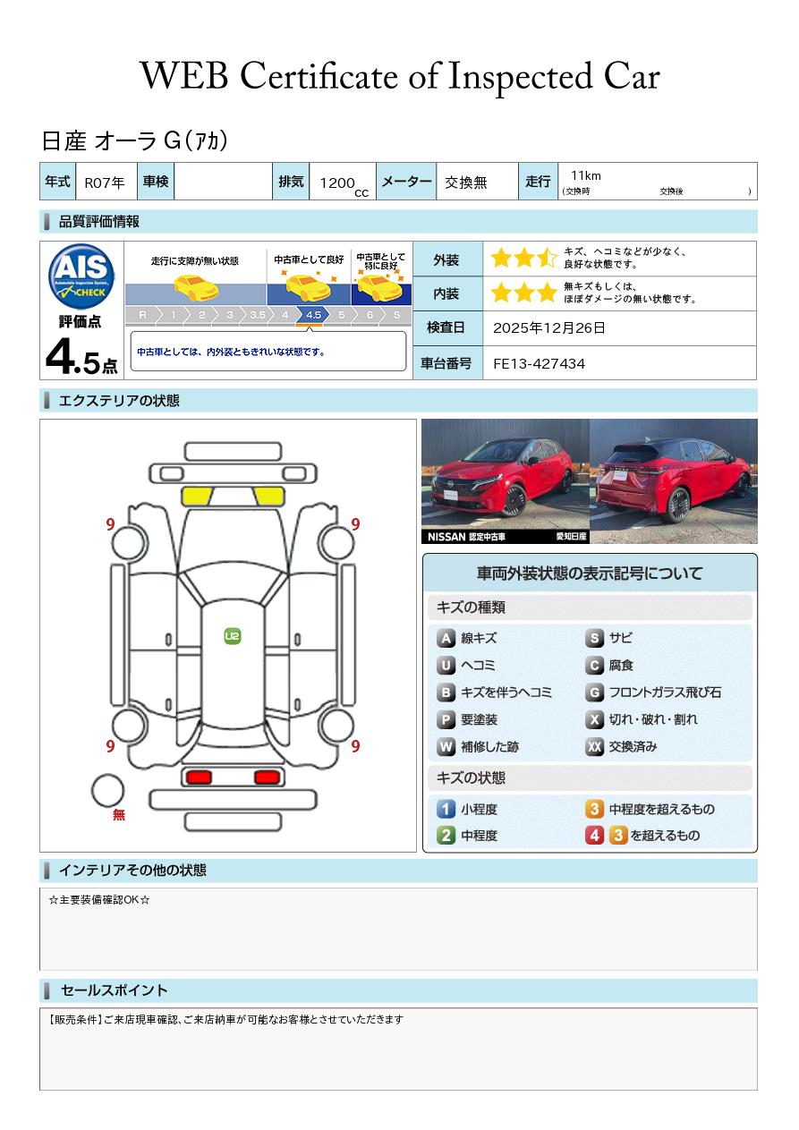 ノートオーラ 1200cc 1.2 G ※雹害未使用車/プロパイロット/寒冷地仕様
