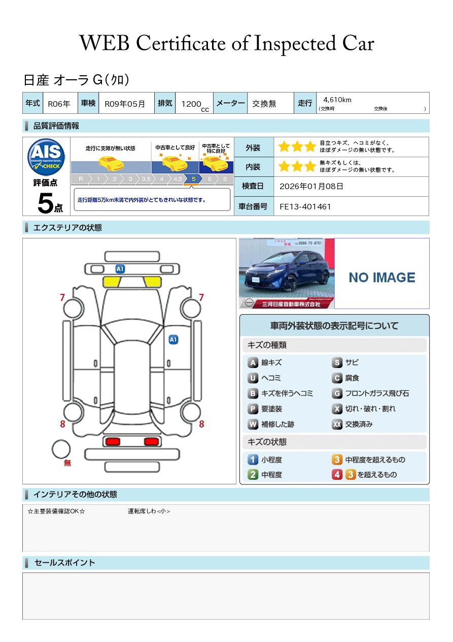 現状括弧書き内の年月まで車検有効期限が残っていますが、ご成約時に新しく車検を取り直します。なお取り直しの費用は車両価格に含まれています。