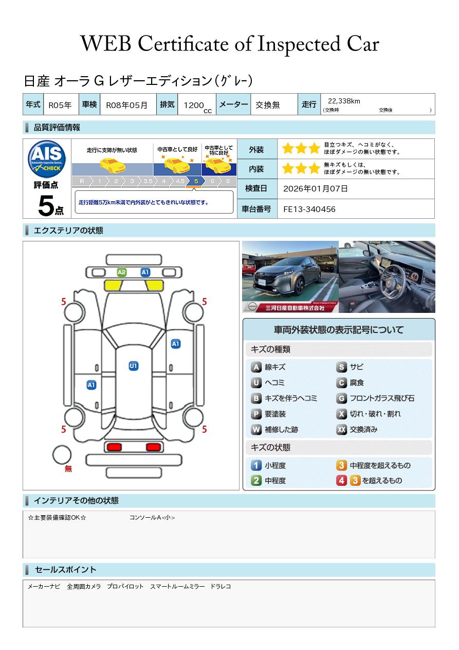現状括弧書き内の年月まで車検有効期限が残っていますが、ご成約時に新しく車検を取り直します。なお取り直しの費用は車両価格に含まれています。