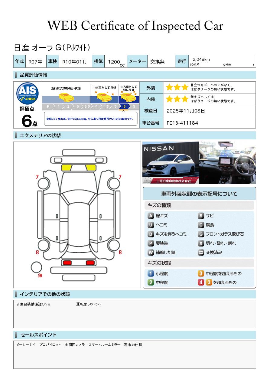 現状括弧書き内の年月まで車検有効期限が残っていますが、ご成約時に新しく車検を取り直します。なお取り直しの費用は車両価格に含まれています。