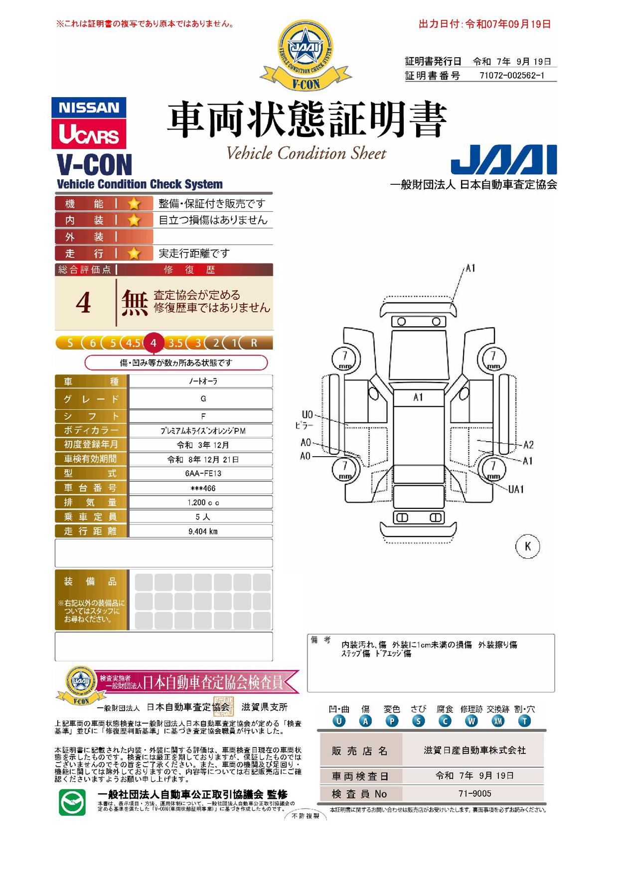 現状括弧書き内の年月まで車検有効期限が残っていますが、ご成約時に新しく車検を取り直します。なお取り直しの費用は車両価格に含まれています。