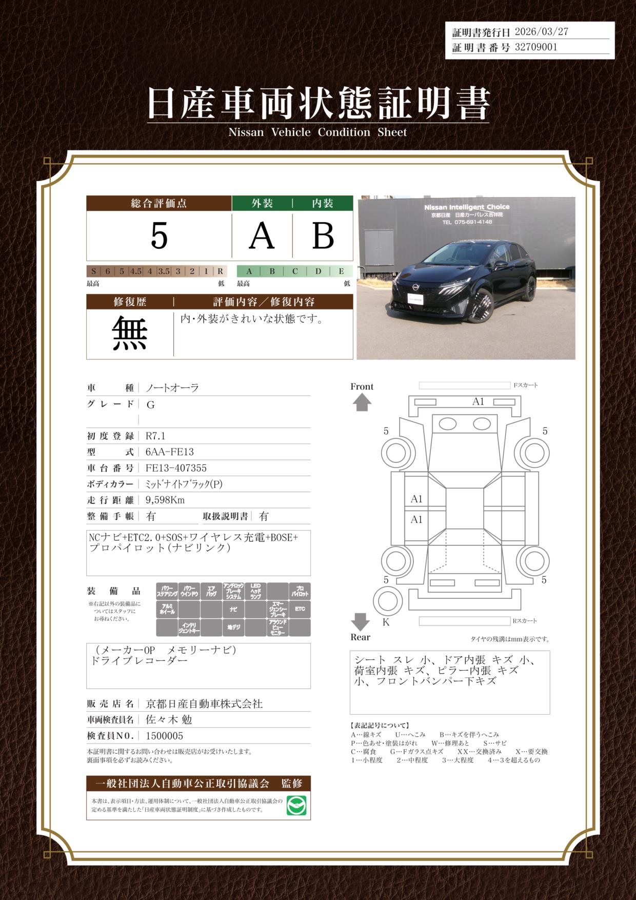 「車両状態証明書」は、査定協会監修のプロの検査員が公正かつ確かな基準で検査した”安心の証”です。