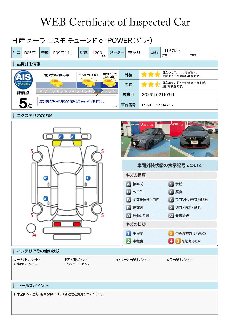 ノートオーラ 1200cc 1.2 NISMO チューンド e-POWER 4WD 日産純正メーカーナビTV 4WD
