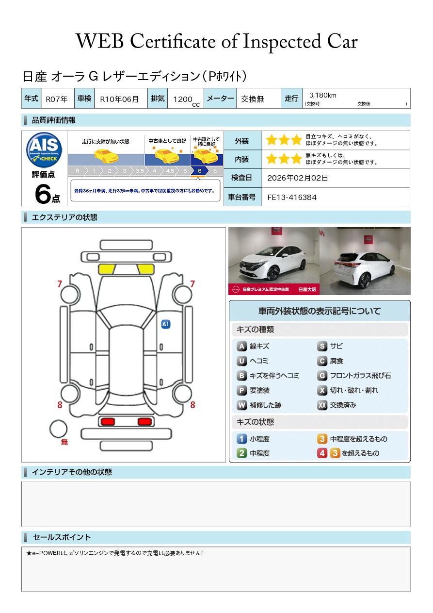ノートオーラ 1200cc 1.2 G レザーエディション 試乗車アップ車両 元社用車