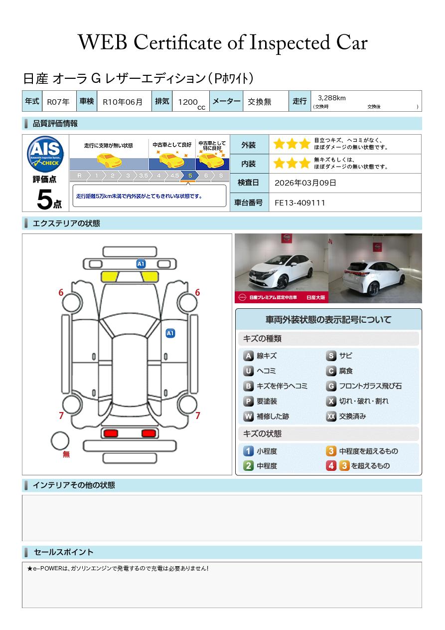 ノートオーラ 1200cc 1.2 G レザーエディション 当社元試乗車 寒冷地仕様