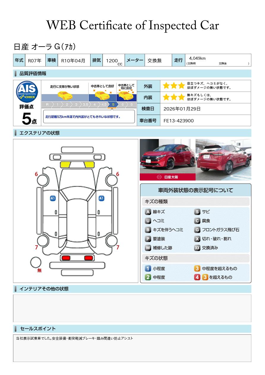 ノートオーラ 1200cc 1.2 G レザーエディション 試乗車アップ車両 元社用車