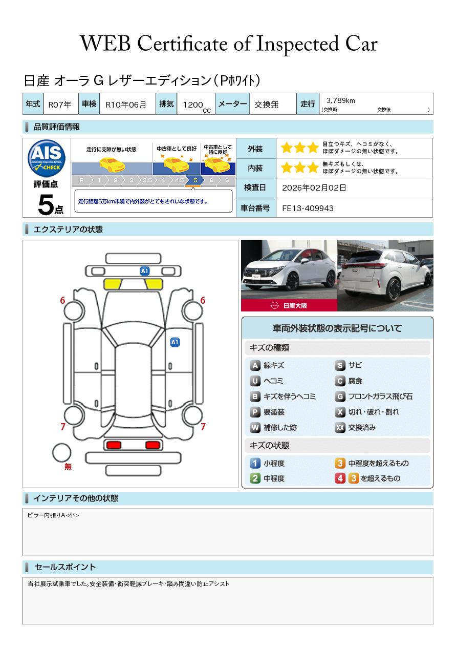 「車両状態証明書」は、査定協会監修のプロの検査員が公正かつ確かな基準で検査した”安心の証”です。