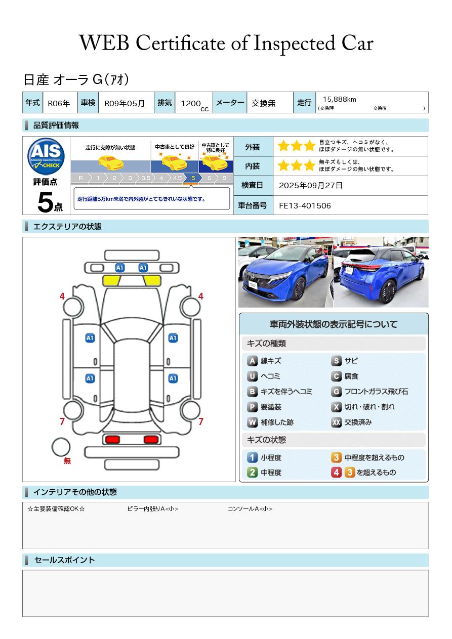 現状車検切れの状態であり、車検費用は車両価格とは別でご負担いただく必要があります。