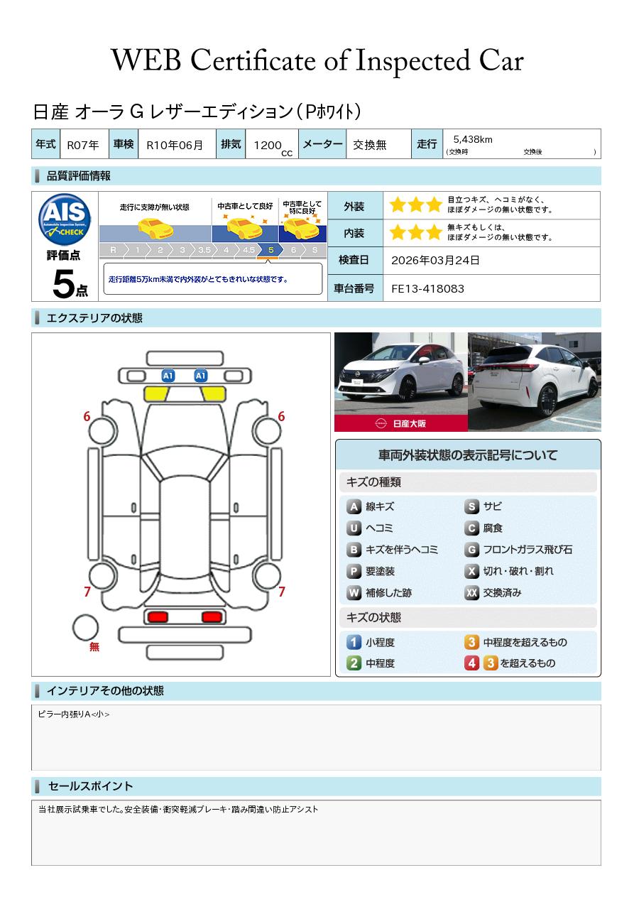 「車両状態証明書」は、査定協会監修のプロの検査員が公正かつ確かな基準で検査した”安心の証”です。