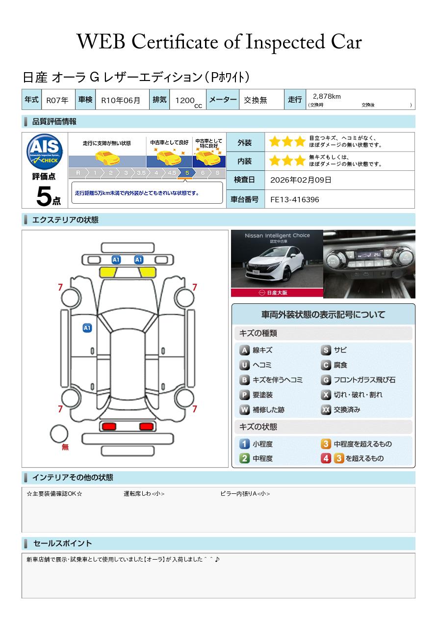 新車店舗で展示・試乗車として使用していました【オーラ】が入荷しました^^♪お支払い総額は大阪府内での基本お見積もりです。他府県登録も可能ですのでお気軽にお問い合わせください。