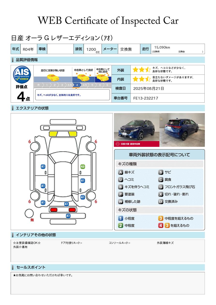 現状括弧書き内の年月まで車検有効期限が残っていますが、ご成約時に新しく車検を取り直します。なお取り直しの費用は車両価格に含まれています。