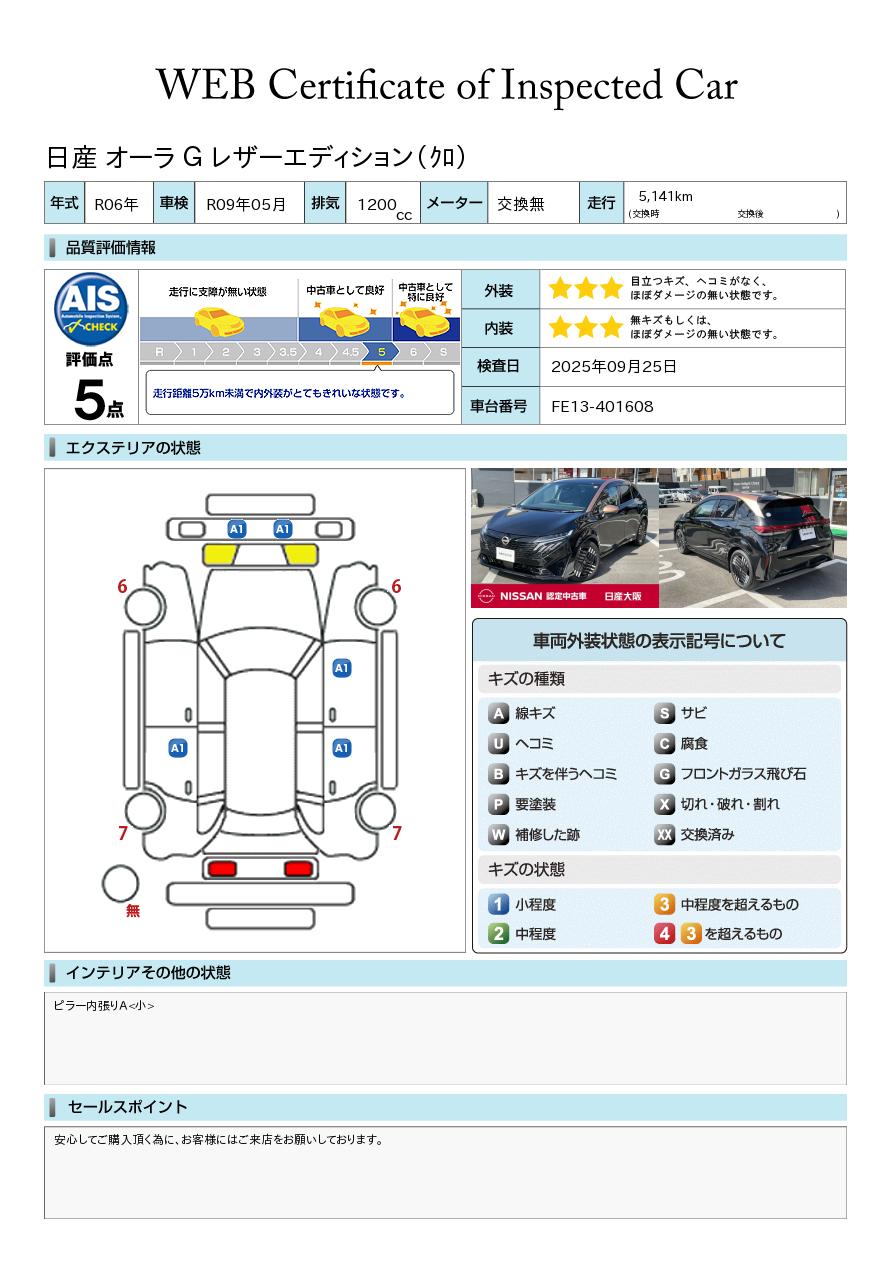 ノートオーラ 1200cc 1.2 G レザーエディション 当社元試乗車&NissanConnectナビ&フルセ