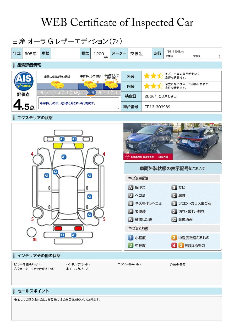 「車両状態証明書」は、査定協会監修のプロの検査員が公正かつ確かな基準で検査した”安心の証”です。