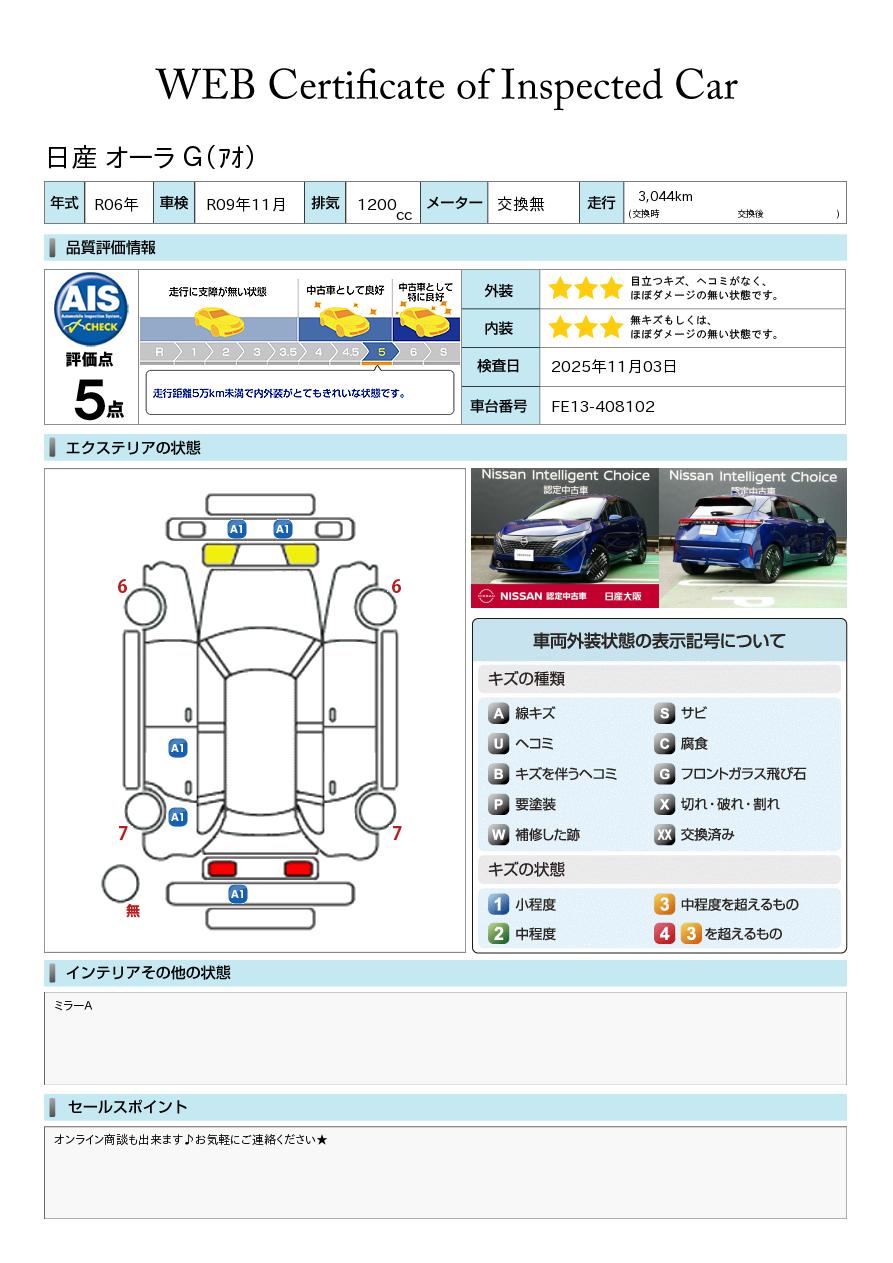 ノートオーラ 1200cc 1.2 G 当社元試乗車&NissanConnectナビ