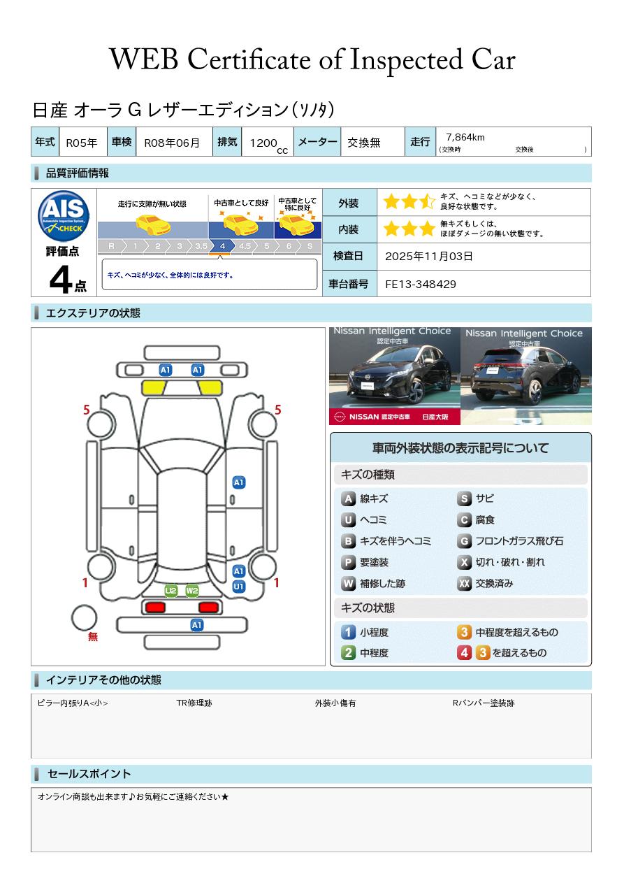 ノートオーラ 1200cc 1.2 G レザーエディション 当社元試乗車&NissanConnectナビ&フルセ