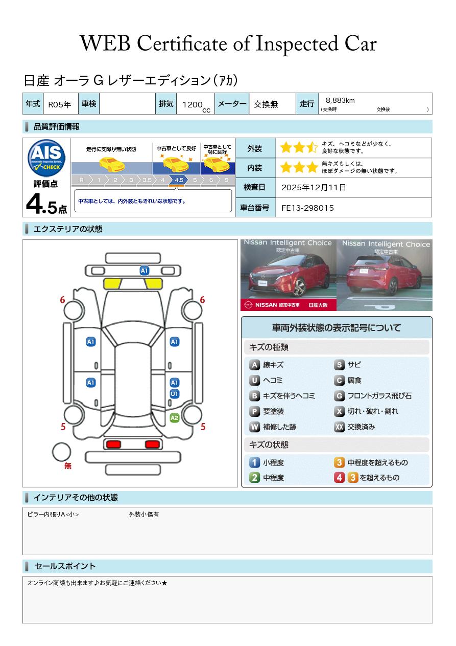 ノートオーラ 1200cc 1.2 G 試乗車アップ車両 元社用車
