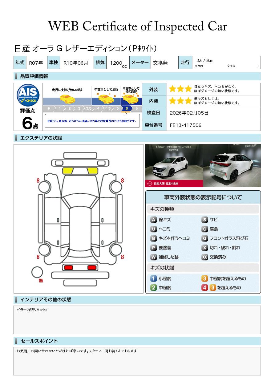 現状括弧書き内の年月まで車検有効期限が残っていますが、ご成約時に新しく車検を取り直します。なお取り直しの費用は車両価格に含まれています。