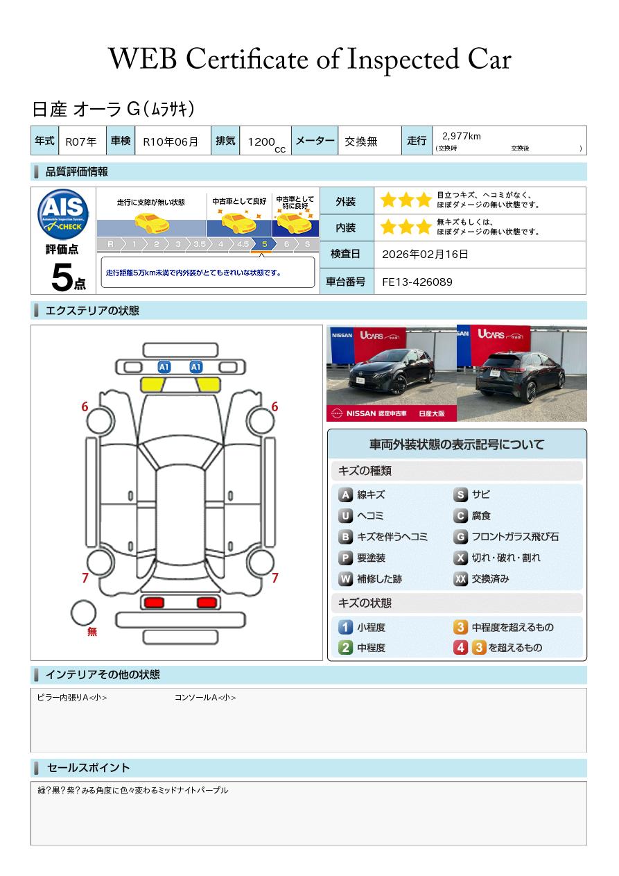ノートオーラ 1200cc 1.2 G レザーエディション 当社元試乗車 寒冷地仕様