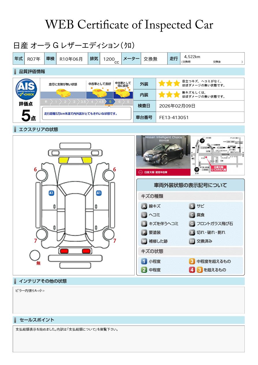 「車両状態証明書」は、査定協会監修のプロの検査員が公正かつ確かな基準で検査した”安心の証”です。