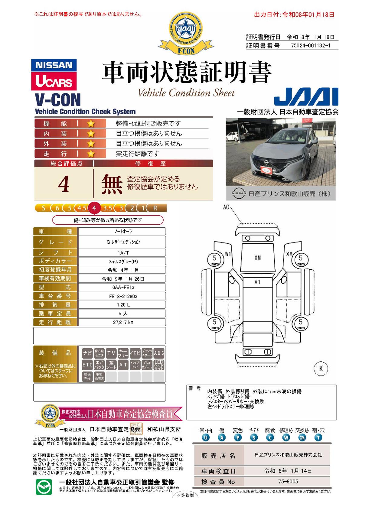 現状括弧書き内の年月まで車検有効期限が残っていますが、ご成約時に新しく車検を取り直します。なお取り直しの費用は車両価格に含まれています。