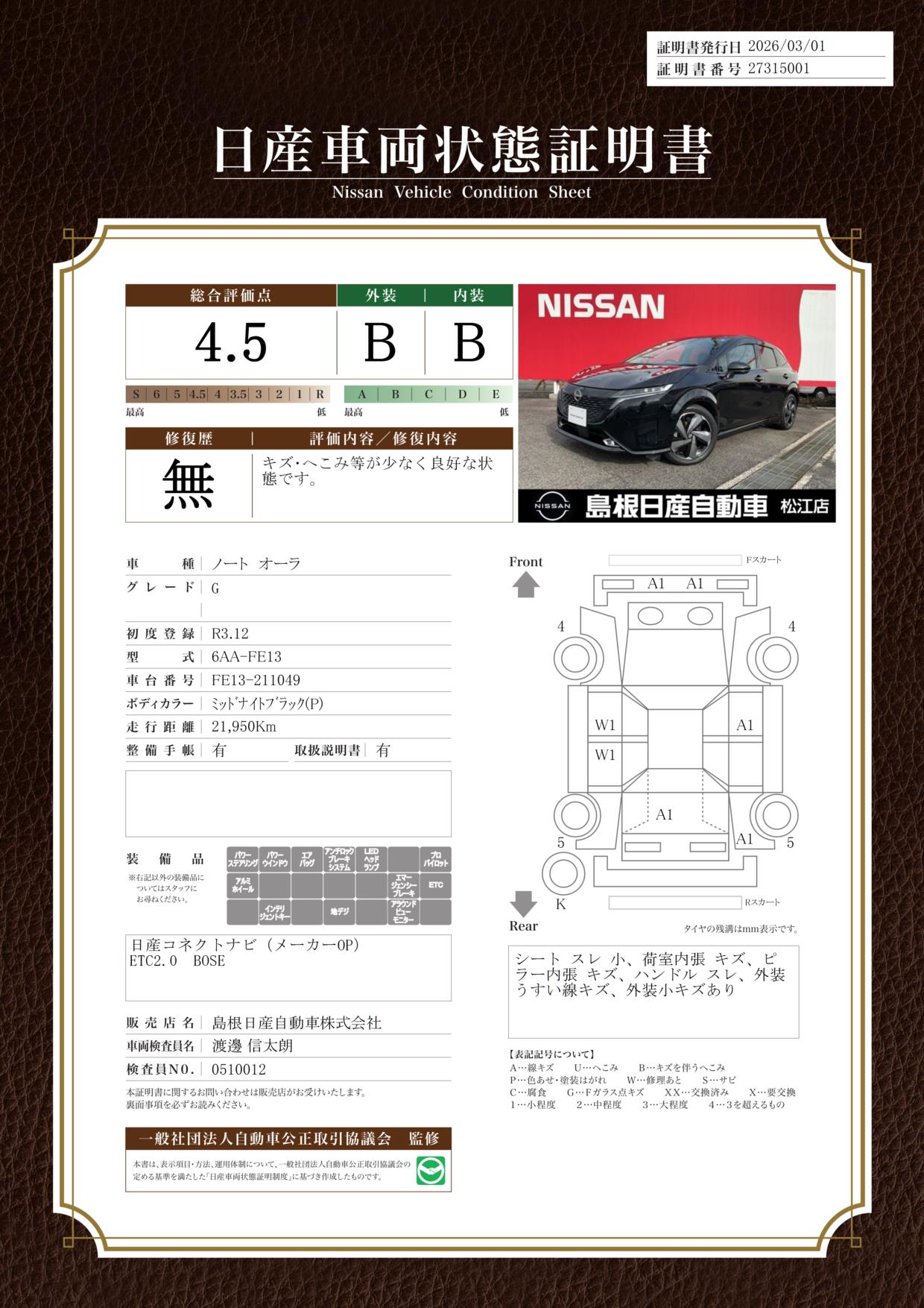 日産車両状態証明