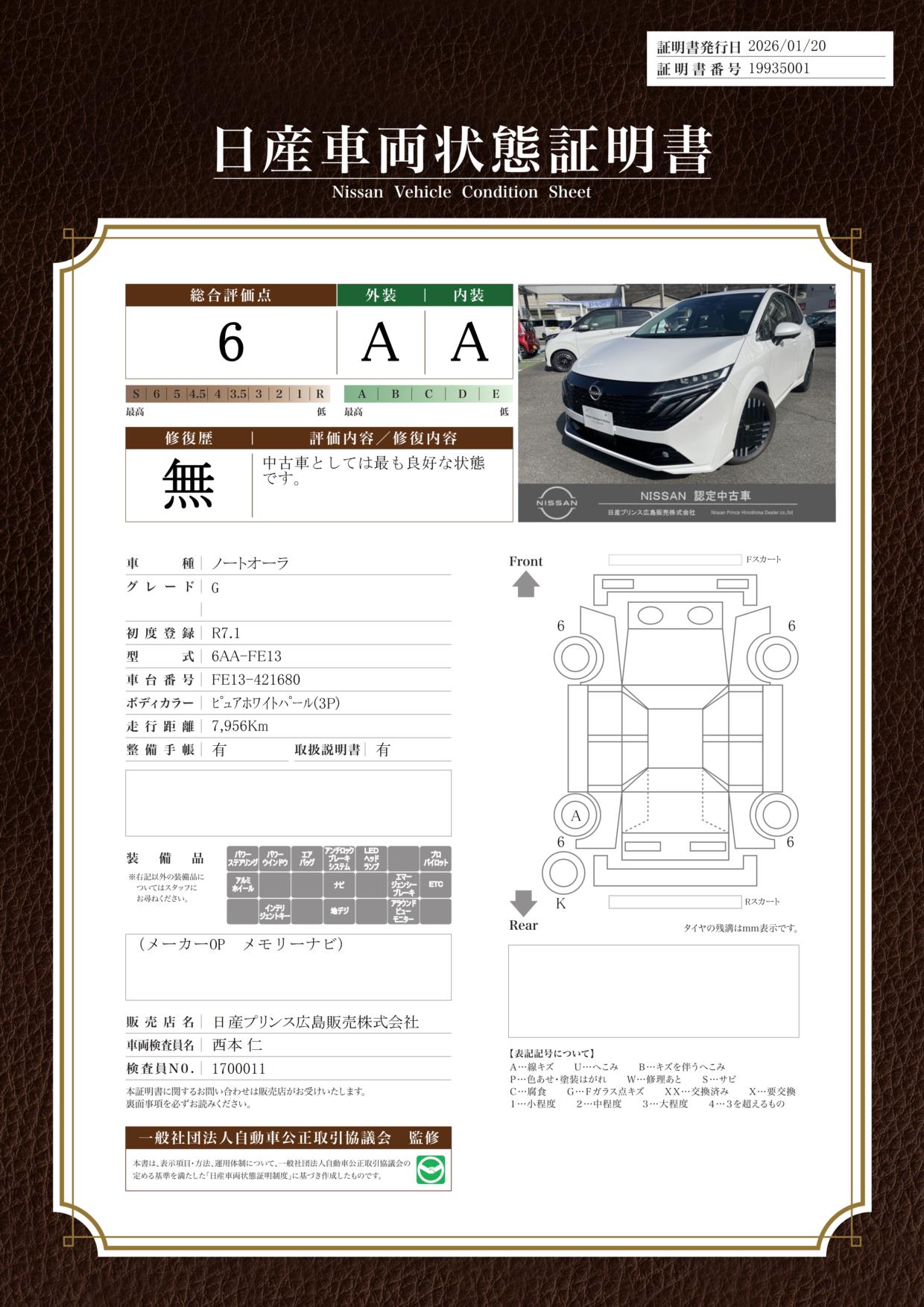 現状括弧書き内の年月まで車検有効期限が残っていますが、ご成約時に新しく車検を取り直します。なお取り直しの費用は車両価格に含まれています。