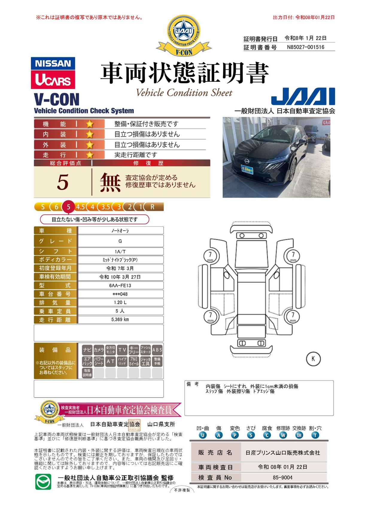 ノートオーラ 1200cc 1.2 G 社用車Up