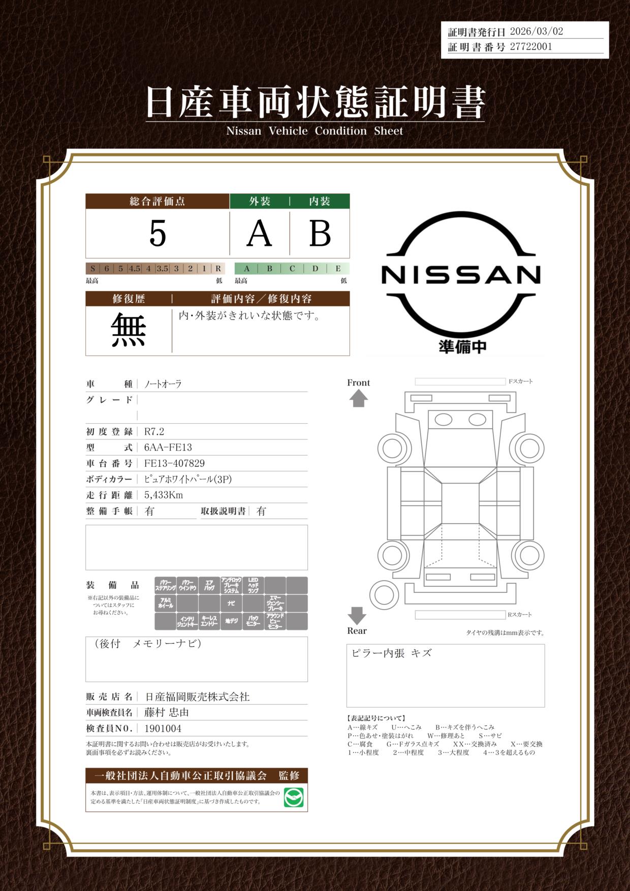 現状括弧書き内の年月まで車検有効期限が残っていますが、ご成約時に新しく車検を取り直します。なお取り直しの費用は車両価格に含まれています。