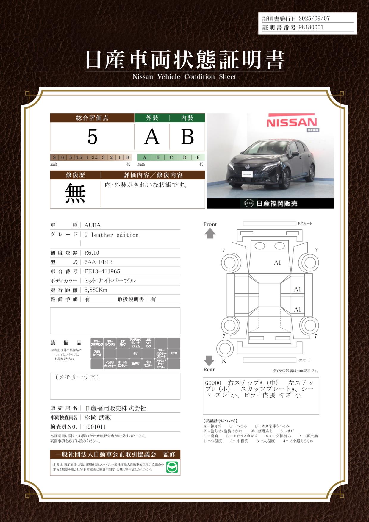 ノートオーラ 1200cc 1.2 G レザーエディション 試乗車UP/NCナビ/アラビュ/BOSE/プロパイ/E