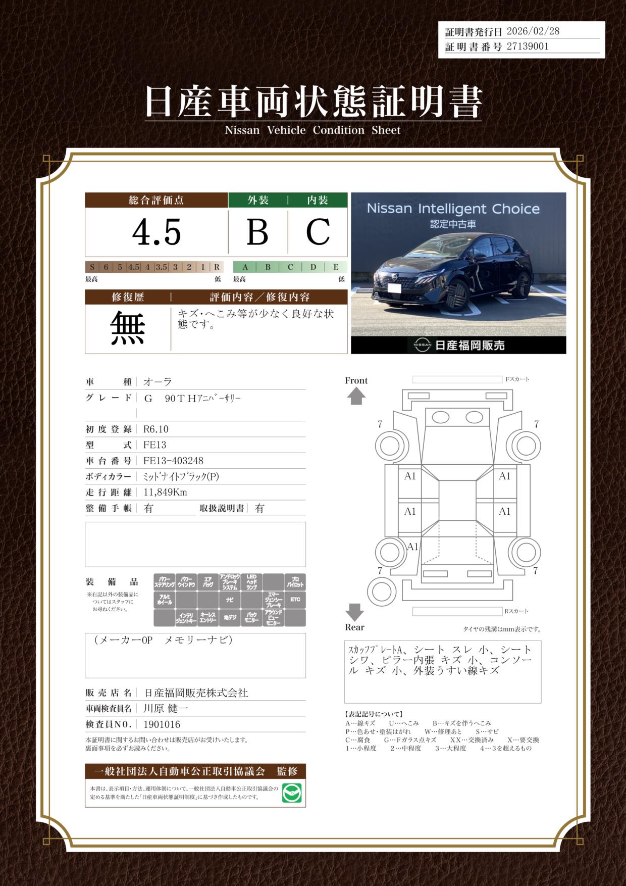 ノートオーラ 1200cc 1.2 G 90周年記念車 当社社用車UP メーカーナビ