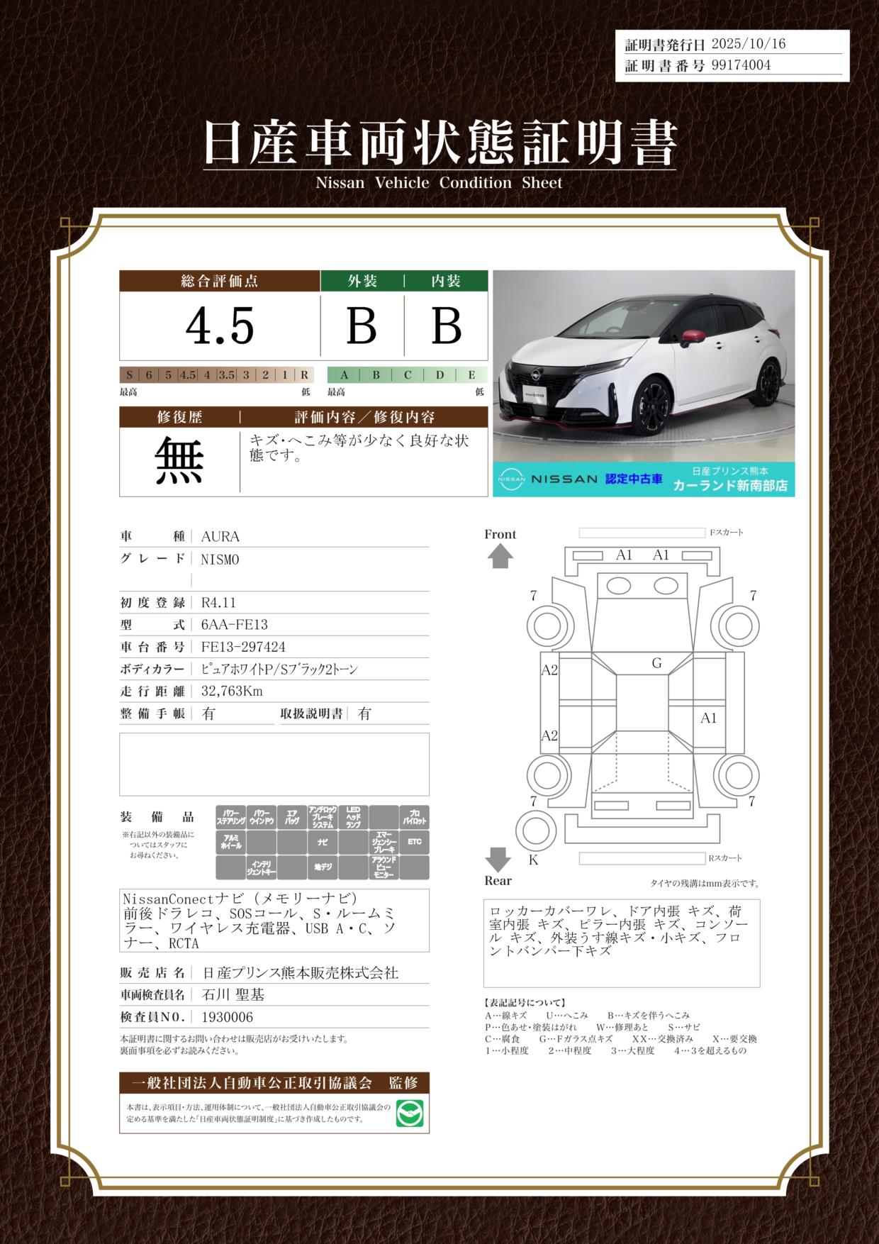 評価機関 : 日産車両状態証明