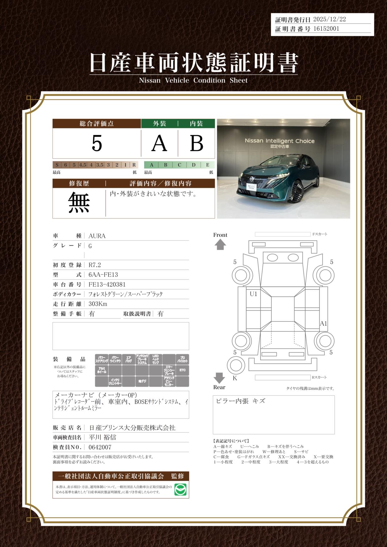 ノートオーラ 1200cc 1.2 AUTECH スポーツ スペック 元社用車 BOSE プロパイロット AVM 寒冷地