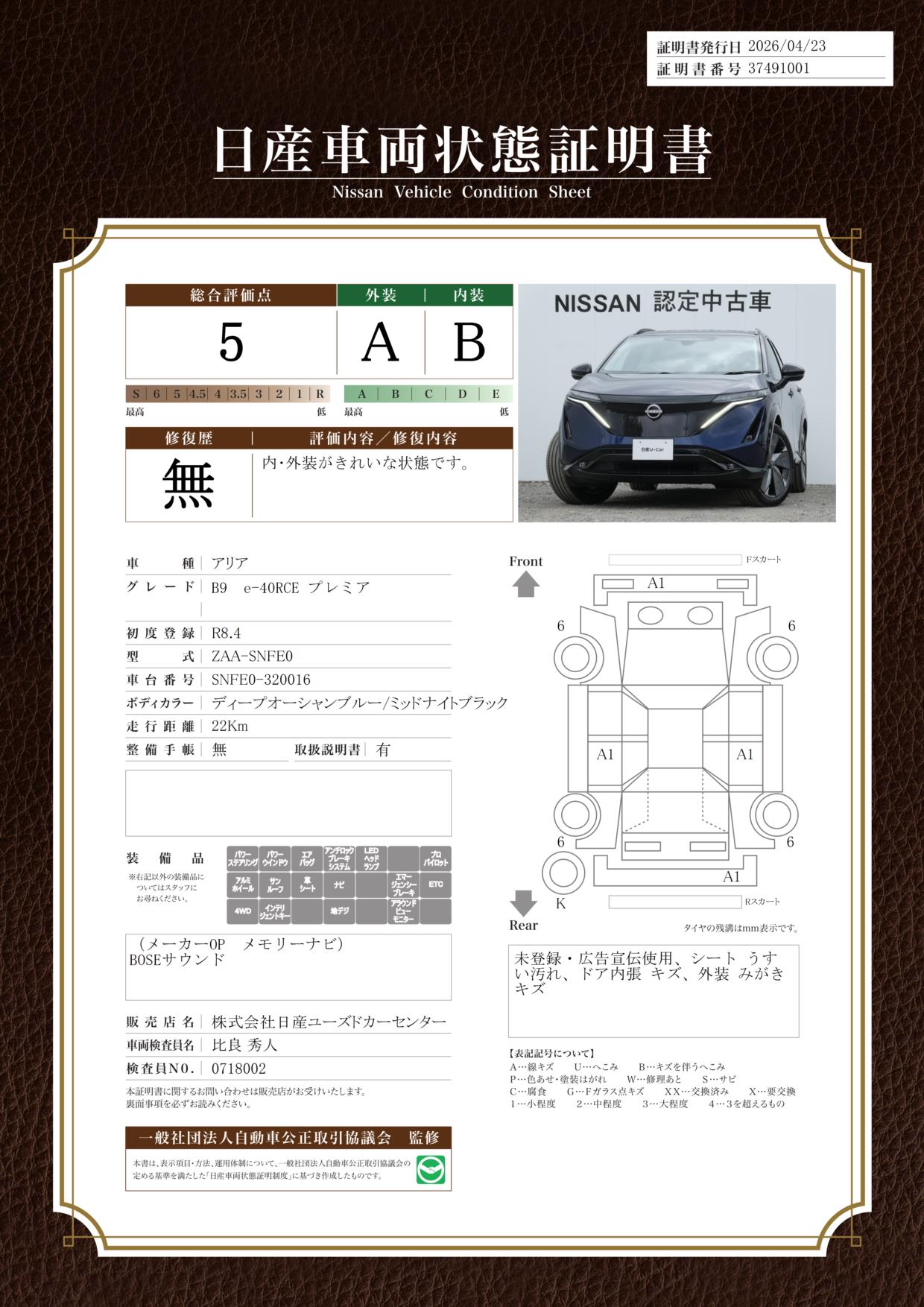 「車両状態証明書」は、査定協会監修のプロの検査員が公正かつ確かな基準で検査した”安心の証”です。