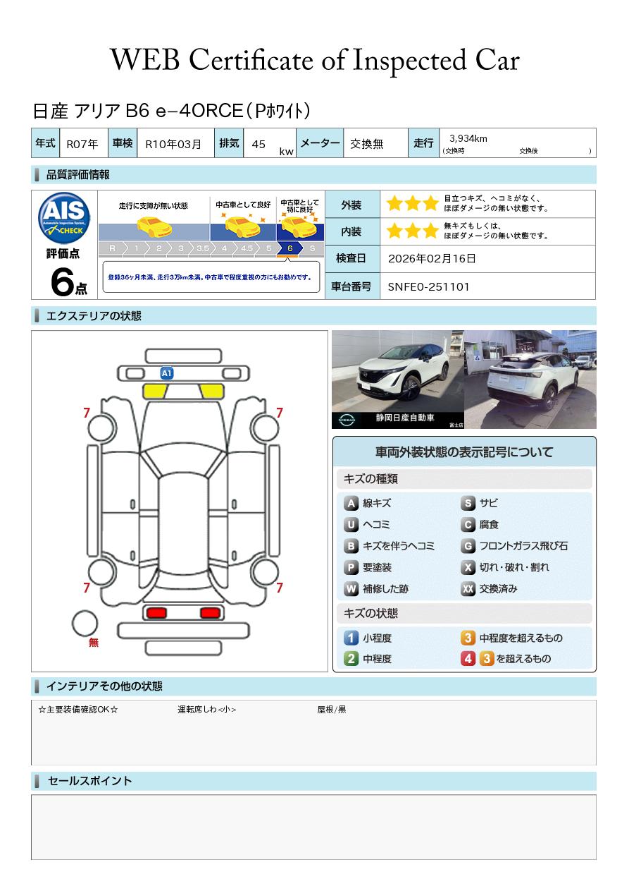 現状括弧書き内の年月まで車検有効期限が残っていますが、ご成約時に新しく車検を取り直します。なお取り直しの費用は車両価格に含まれています。