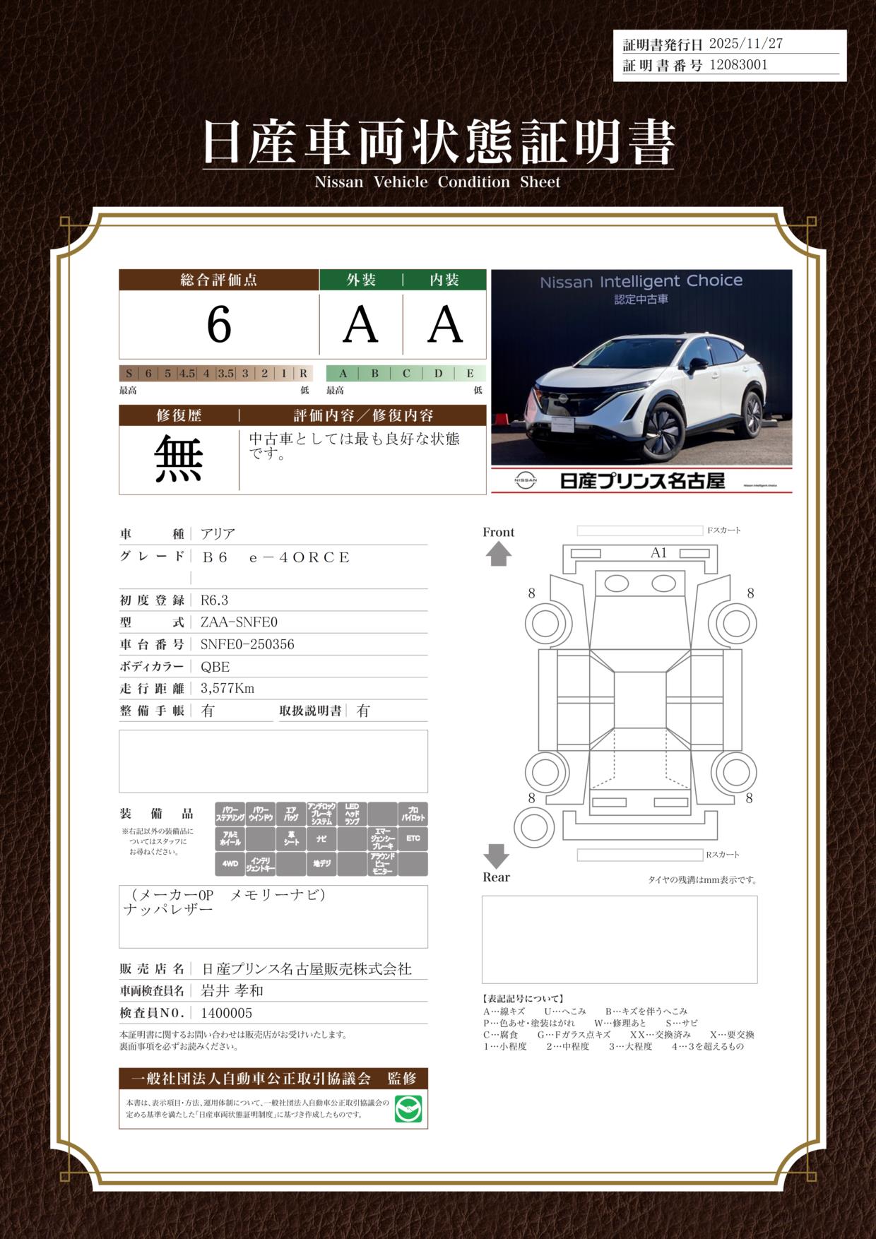 現状括弧書き内の年月まで車検有効期限が残っていますが、ご成約時に新しく車検を取り直します。なお取り直しの費用は車両価格に含まれています。